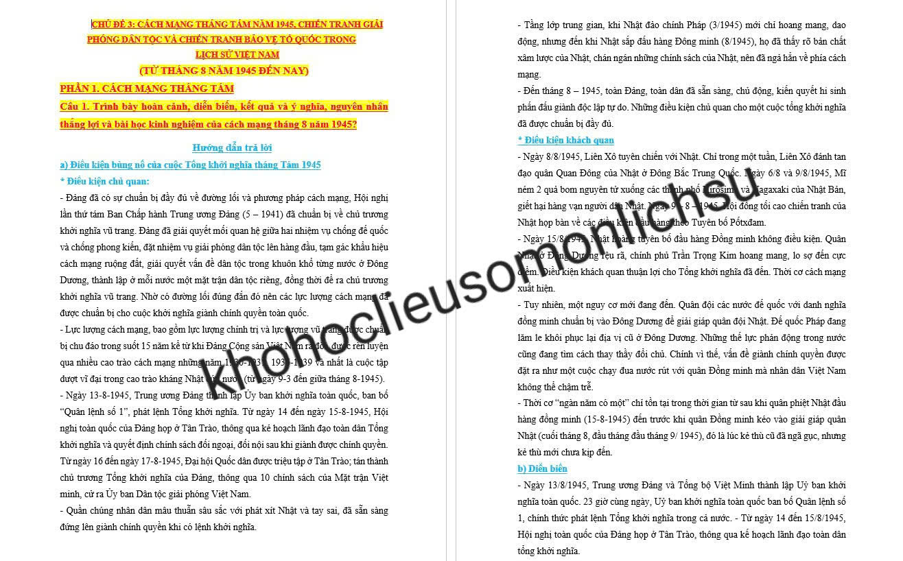 CHỦ ĐỀ 3: CÁCH MẠNG THÁNG TÁM NĂM 1945, CHIẾN TRANH GIẢI PHÓNG DÂN TỘC VÀ CHIẾN TRANH BẢO VỆ TỔ QUỐC TRONG LỊCH SỬ VIỆT NAM (TỪ THÁNG 8 NĂM 1945 ĐẾN NAY)