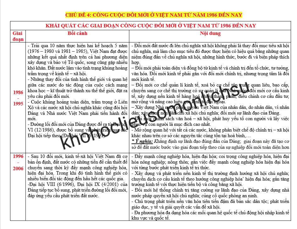 CHỦ ĐỀ 4: CÔNG CUỘC ĐỔI MỚI Ở VIỆT NAM TỪ NĂM 1986 ĐẾN NAY