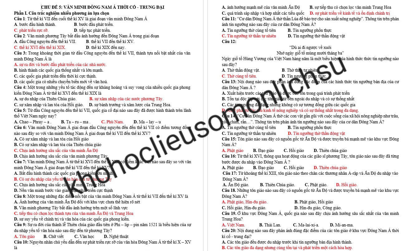 CHỦ ĐỀ 5: VĂN MINH ĐÔNG NAM Á THỜI CỔ – TRUNG ĐẠI