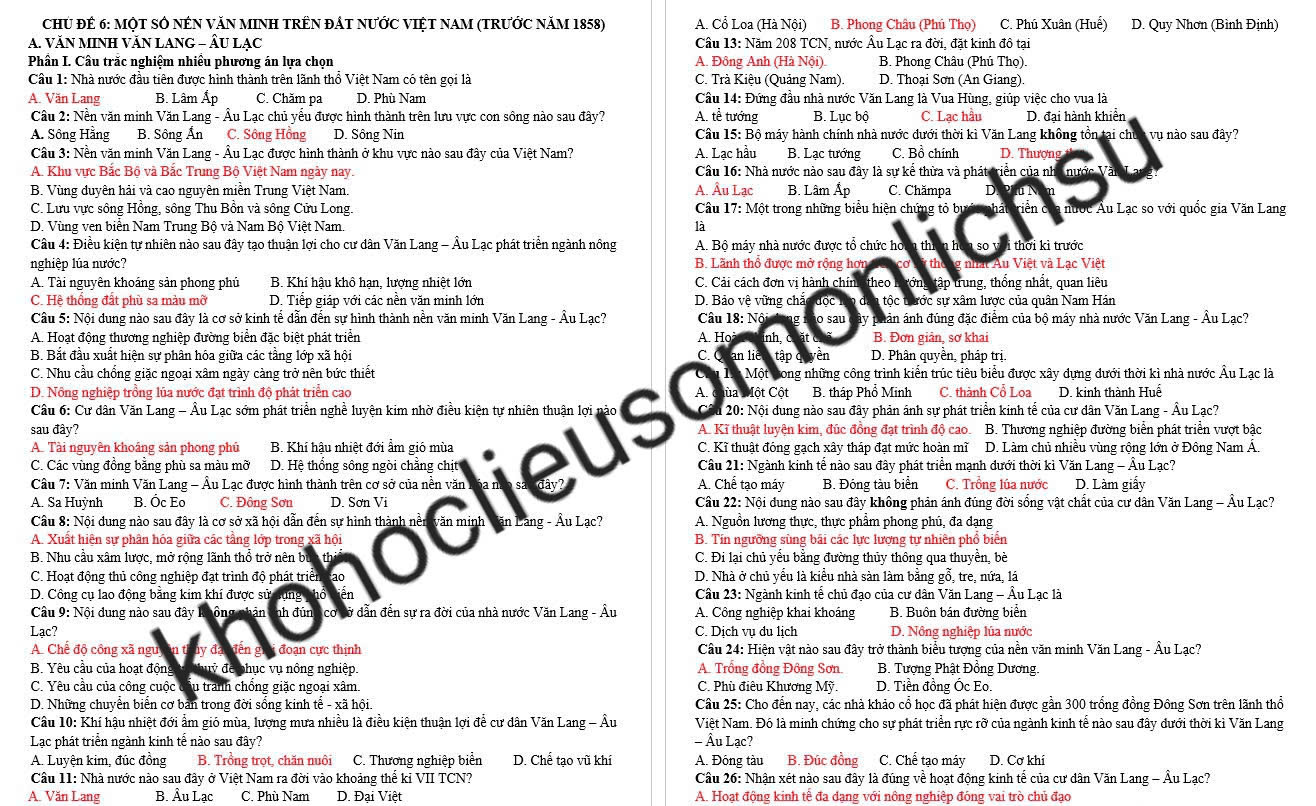 CHỦ ĐỀ 6: MỘT SỐ NỀN VĂN MINH TRÊN ĐẤT NƯỚC VIỆT NAM (TRƯỚC NĂM 1858)